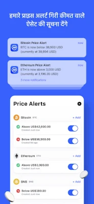 अपने निवेश को व्यवस्थित करना अब पहले से कहीं ज़्यादा आसान है। CoinMarketCap के साथ आप अपना व्यक्तिगत पोर्टफोलियो बना सकते हैं और हमारे रियल-टाइम ट्रैकर के साथ उसकी हर गतिविधि पर नज़र रख सकते हैं। अपनी पसंदीदा क्रिप्टोकरेंसी के लिए अनुकूलित वॉचलिस्ट तैयार करें और मूल्य अलर्ट सेट करें, ताकि महत्वपूर्ण मूल्य लक्ष्यों के पूरा होने पर आपको तुरंत सूचना मिल सके। 90 से अधिक फिएट मुद्राओं (USD, EUR, JPY), क्रिप्टो बेस (BTC, ETH, XRP), और यहां तक कि कीमती धातुओं में भी अपने पोर्टफोलियो का अवलोकन करें। 45,000 से अधिक सक्रिय क्रिप्टो बाजारों में संपत्तियों की तुलना करें, उनके मार्केट कैप, वॉल्यूम और रैंकिंग का आकलन करें, और हमारे शक्तिशाली क्रिप्टो कनवर्टर का उपयोग करके आसानी से मुद्राओं के बीच रूपांतरण करें।