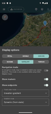 Geo Tracker में, आप OSM या Google की योजनाओं के साथ-साथ Google या Mapbox की उपग्रह छवियों का उपयोग करके अपने ट्रैक और आसपास के विस्तृत क्षेत्रों को देख सकते हैं। यह सुनिश्चित करता है कि आपके पास दुनिया में कहीं भी, हर समय सबसे विस्तृत मानचित्र उपलब्ध हो। आपके द्वारा देखे गए मानचित्र क्षेत्र आपके फ़ोन में सहेजे जाते हैं और कुछ समय के लिए ऑफ़लाइन भी उपलब्ध रहते हैं (यह OSM मानचित्रों और Mapbox की उपग्रह छवियों के लिए विशेष रूप से उपयोगी है)। ट्रैक रिकॉर्ड करने और उनके आँकड़े की गणना के लिए केवल एक GPS सिग्नल की आवश्यकता होती है; इंटरनेट केवल मानचित्र छवियों को डाउनलोड करने के लिए अनिवार्य है। वाहन चलाते समय, आप नेविगेशन मोड को सक्रिय कर सकते हैं, जिसमें मानचित्र स्वचालित रूप से आपकी यात्रा की दिशा में घूमता है, जिससे नेविगेशन काफी सरल हो जाता है।