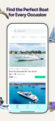 Getmyboat के साथ, अपनी आदर्श जल यात्रा की योजना बनाना पहले से कहीं अधिक सरल है। सत्यापित समीक्षाओं और तस्वीरों के साथ विभिन्न प्रकार की नाव लिस्टिंग ब्राउज़ करें, चाहे वह जन्मदिन की पार्टी के लिए एक जीवंत पंटून हो, सूर्यास्त की शांत सैर के लिए एक आकर्षक पाल नौका, या किसी विशेष अवसर के लिए एक भव्य नौका। अपनी पसंद की नाव मिलने पर, आप तुरंत बुकिंग कर सकते हैं और अपनी यात्रा को पूरी तरह से निजीकृत करने के लिए नाव के मालिक या कप्तान से सीधे चैट कर सकते हैं। आप चाहें तो एक अनुभवी कप्तान के साथ आराम कर सकते हैं, या यदि आपके पास अनुभव है तो स्वयं नाव चला सकते हैं – Getmyboat आपकी हर ज़रूरत को पूरा करता है।