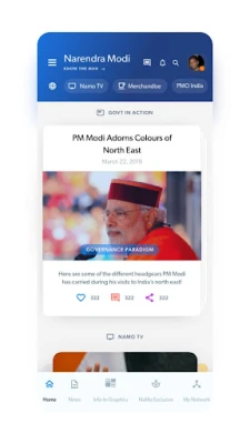 Narendra Modi App केवल जानकारी का स्रोत नहीं, बल्कि जुड़ाव का मंच भी है। NaMo TV सेक्शन पर प्रधानमंत्री के नवीनतम भाषणों और प्रेरणादायक वीडियो को देखें। यहाँ आप विचारशील मंचों में शामिल होकर अपने बहुमूल्य सुझाव, विचार और दृष्टिकोण व्यापक दर्शकों के साथ साझा कर सकते हैं। समाज में सकारात्मक बदलाव लाने की दिशा में योगदान देने के लिए आपको सशक्त बनाने वाली रोमांचक विशेषताएं भी उपलब्ध हैं। छोटे-छोटे कार्यों को पूरा करके आप बैज अर्जित कर सकते हैं और संतुष्टि की भावना महसूस कर सकते हैं, जिससे आप राष्ट्र निर्माण में अपनी भागीदारी सुनिश्चित करते हैं।