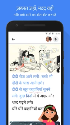 Read Along की सबसे ख़ास बात है इसकी बुद्धिमान सहपाठी 'दिया'। Google Assistant की उन्नत वाक् पहचान तकनीक से संचालित, दिया आपके बच्चे के साथ पढ़ती है, उनकी आवाज़ सुनती है और तुरंत प्रतिक्रिया देती है। जब वे सही पढ़ते हैं, तो दिया उनका उत्साह बढ़ाती है, और जब वे अटकते हैं, तो उन्हें प्यार से मार्गदर्शन करती है – मानो कोई व्यक्तिगत शिक्षक उनके पास ही बैठा हो। यहां बच्चों के लिए अनगिनत मनोरंजक कहानियों का खजाना मौजूद है, जो हिंदी, अंग्रेजी, बांग्ला, उर्दू, तेलुगु, मराठी, तमिल, स्पेनिश और पुर्तगाली जैसी विभिन्न भाषाओं में सावधानीपूर्वक चयनित और बिल्कुल मुफ्त उपलब्ध हैं। नई कहानियाँ नियमित रूप से जोड़ी जाती रहती हैं, जिससे सीखने का सफर हमेशा ताज़ा बना रहता है।