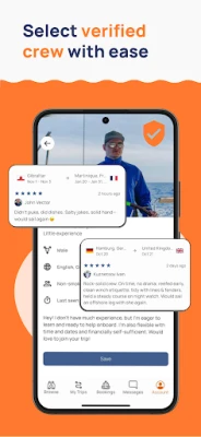 क्या आप समुद्री यात्राओं के शौकीन हैं, पर सफर के खर्चों को लेकर चिंतित हैं? यह मंच नौका मालिकों और साहसिक यात्रियों के लिए एक असाधारण अवसर प्रस्तुत करता है, जहाँ वे अपने रोमांच को साझा कर सकते हैं और यात्रा लागतों पर महत्वपूर्ण बचत कर सकते हैं। अपनी यात्रा का विवरण कुछ ही मिनटों में पोस्ट करें और ईंधन, भोजन या मरीना शुल्क जैसे खर्चों को आसानी से साझा करें। दुनिया भर से 20,000 से अधिक अनुभवी क्रू सीकर्स के हमारे विशाल समुदाय तक तुरंत पहुँच प्राप्त करें। हम प्रत्येक संभावित सदस्य की पहचान सत्यापित करते हैं, और आप उनकी प्रोफाइल पर अनुभव, आयु और पसंद जैसी सभी महत्वपूर्ण जानकारी एक नज़र में देख सकते हैं, जिससे आपको पूरी तरह से विश्वसनीय और संगत साथी मिलते हैं।