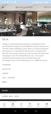 नई व्यवस्थाएं करने के अलावा, यह सहज उपकरण आपको अपनी मौजूदा योजनाओं को सहजता से प्रबंधित करने का अधिकार देता है। रात के खाने के आरक्षण को समायोजित करने या स्पा अपॉइंटमेंट को पुनर्निर्धारित करने की आवश्यकता है? अपनी बुकिंग को पूर्ण लचीलेपन के साथ संशोधित करें, यह सुनिश्चित करते हुए कि आपकी यात्रा कार्यक्रम हमेशा आपकी पसंद के अनुरूप हो। इसके अतिरिक्त, अपने शानदार जहाज की पेचीदगियों में गहराई से उतरें। अपने परिवेश को सहजता से नेविगेट करने, छिपे हुए रत्नों की खोज करने और नौका के हर शानदार कोने से परिचित होने के लिए विस्तृत डेक योजनाओं का अन्वेषण करें, जिससे आपकी अपनेपन और अन्वेषण की भावना बढ़ती है।